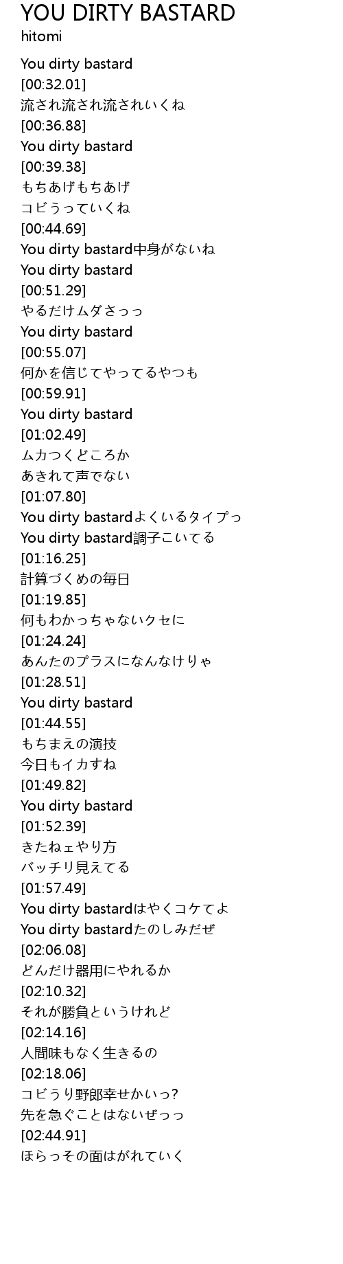 | [00:46.17] | You dirty bastard zhōng shēn |