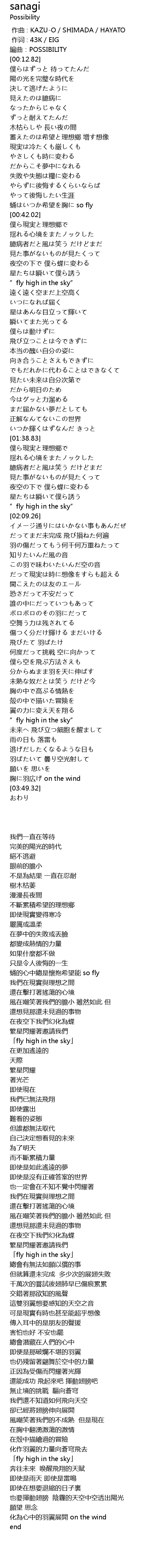 | [00:39.55] | 蛹はいつか希望を胸に so fly |