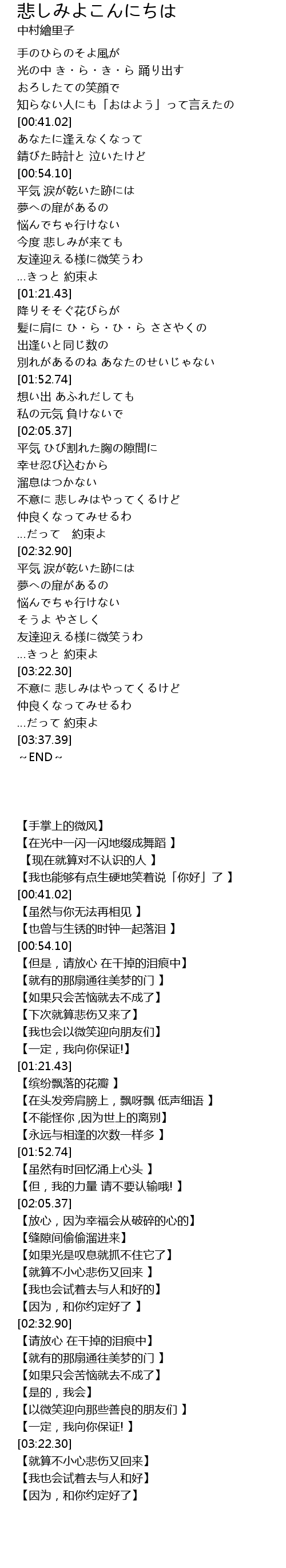 | [03:23.00] | 不意に 悲しみはやってくるけど |