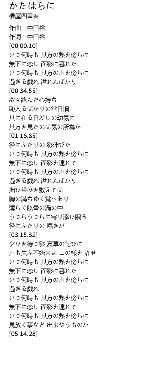 | [00:01.03] | いつ何時も 其方の熱を傍らに |