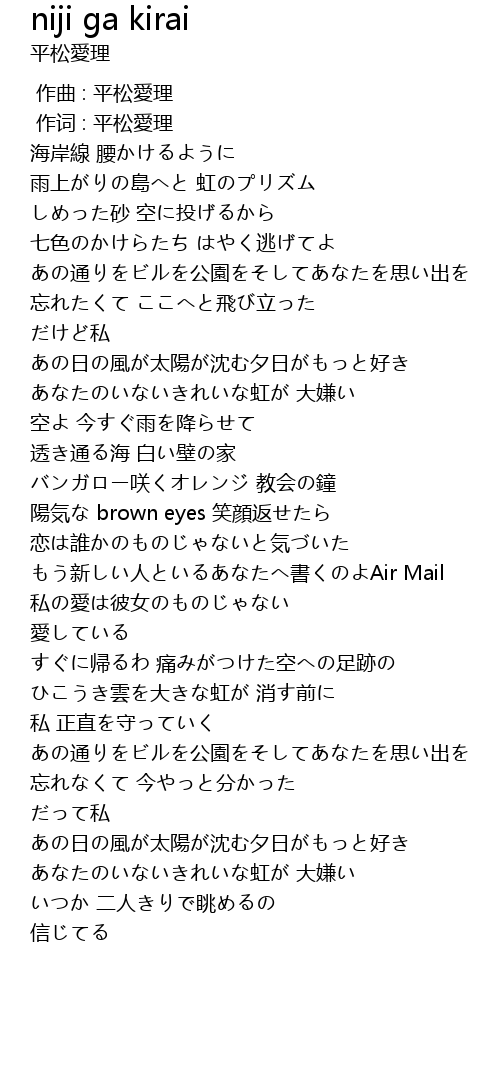 | [00:00.00] | 作曲 : 平松愛理 |