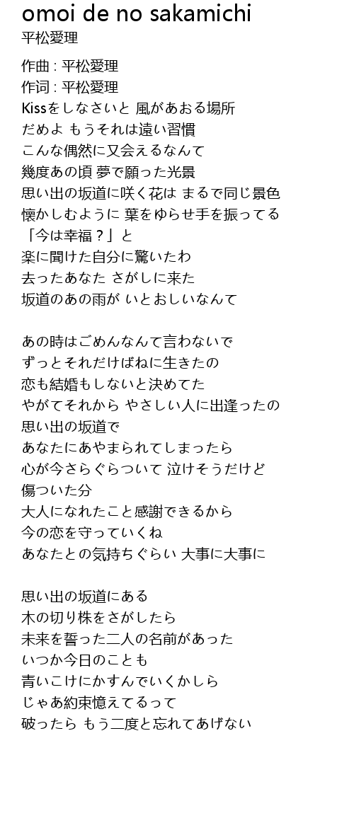 | [01:40.40] | 坂道のあの雨が いとおしいなんて |