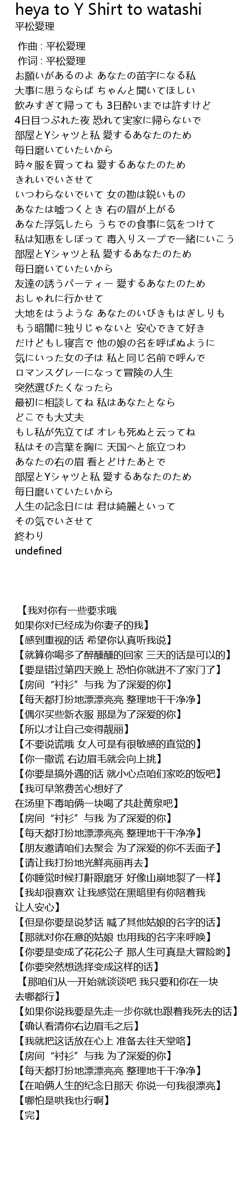 | [02:18.32] | 部屋とYシャツと私 愛するあなたのため |