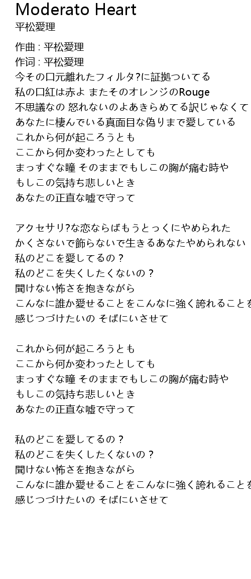 | [00:39.44] | 不思議なの 怒れないのよあきらめてる訳じゃなくて |