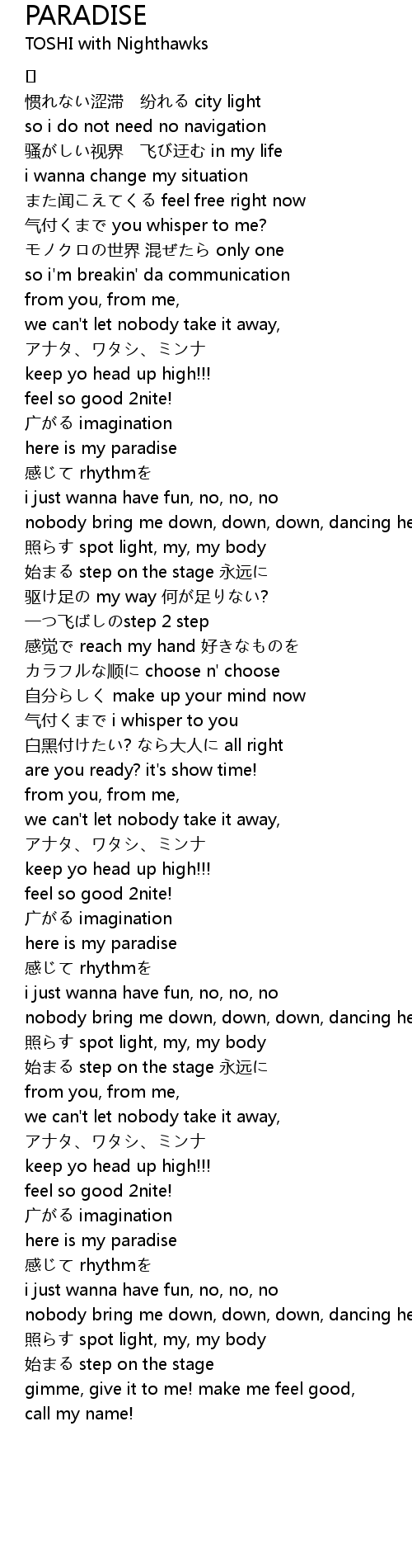 | Song | PARADISE |