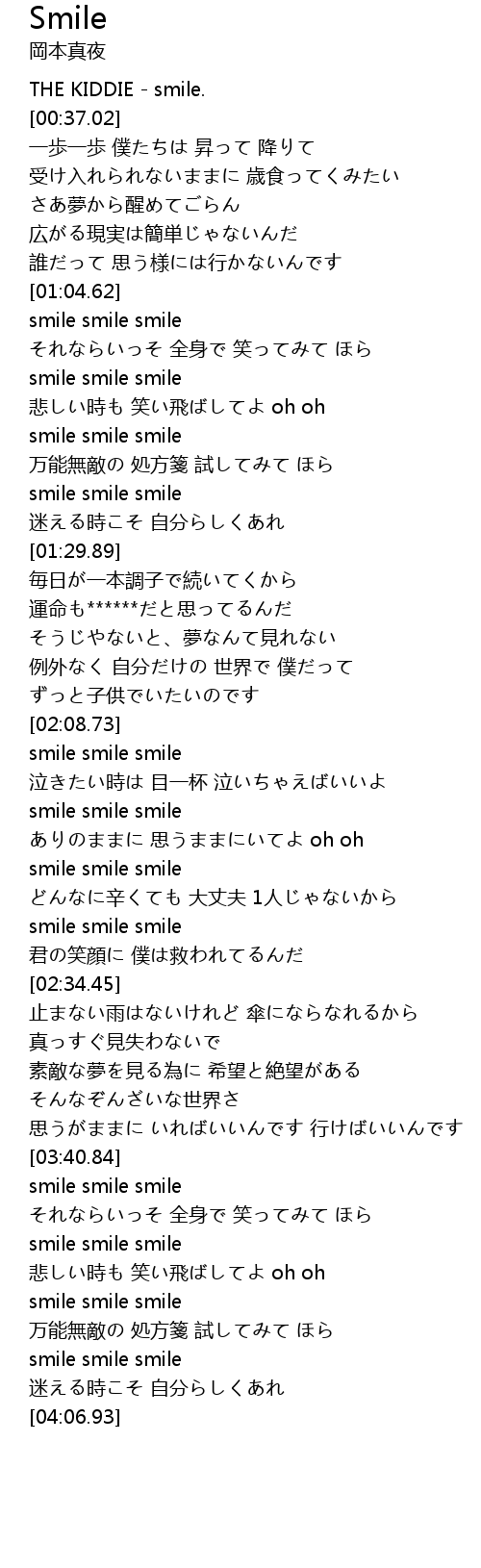 | [00:00.00] | THE KIDDIE - smile. |