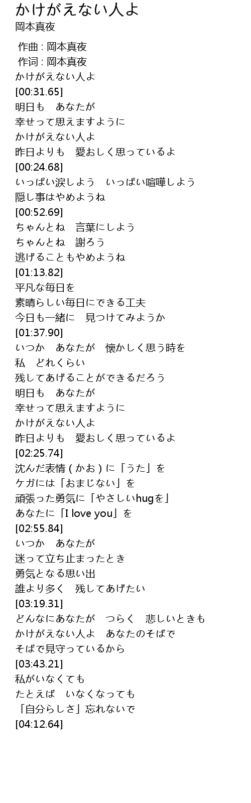 | [03:30.35] | かけがえない人よ あなたのそばで |