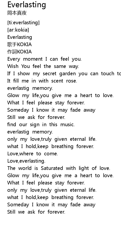 | [01:15.66] | If I show my secret garden you can touch to eternity. |