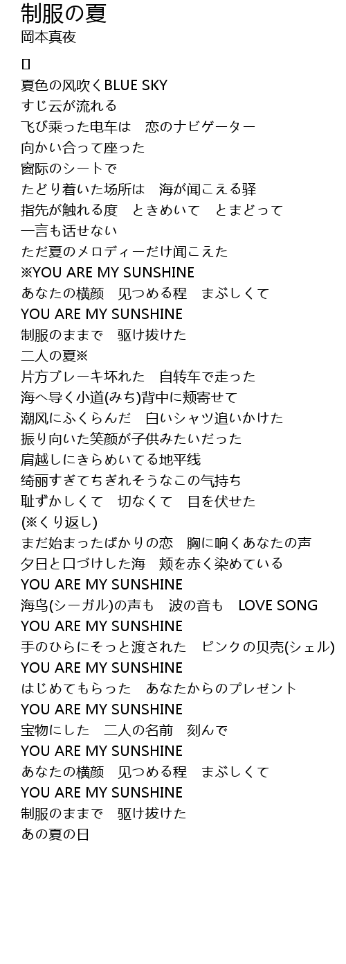 | 潮风にふくらんだ 白いシャツ追いかけた | |