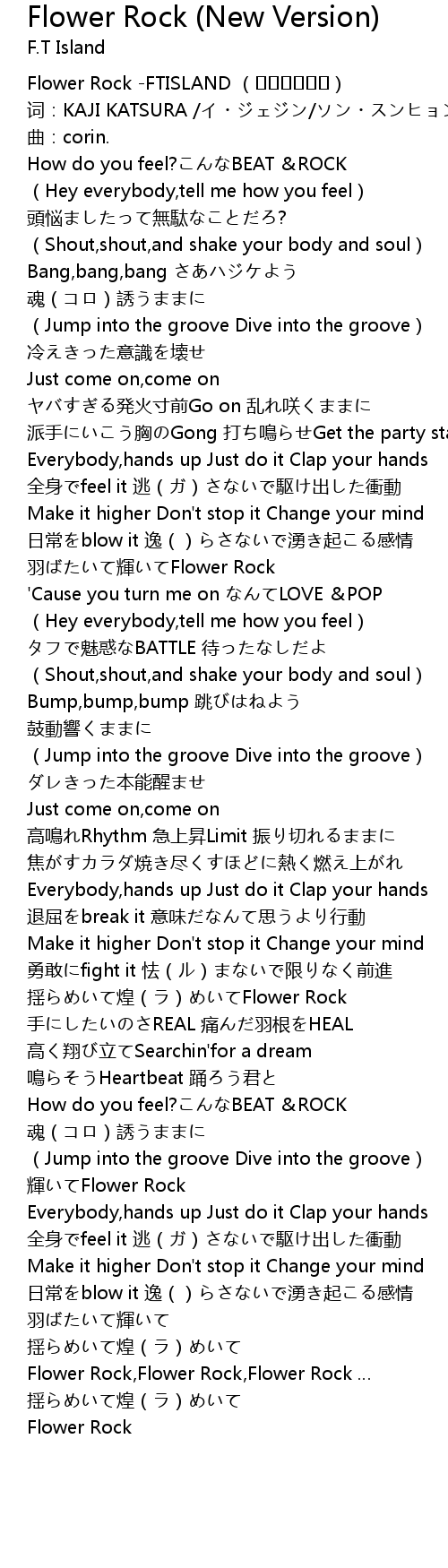 | [00:00.00] | Flower Rock -FTISLAND (프티아일랜드) |