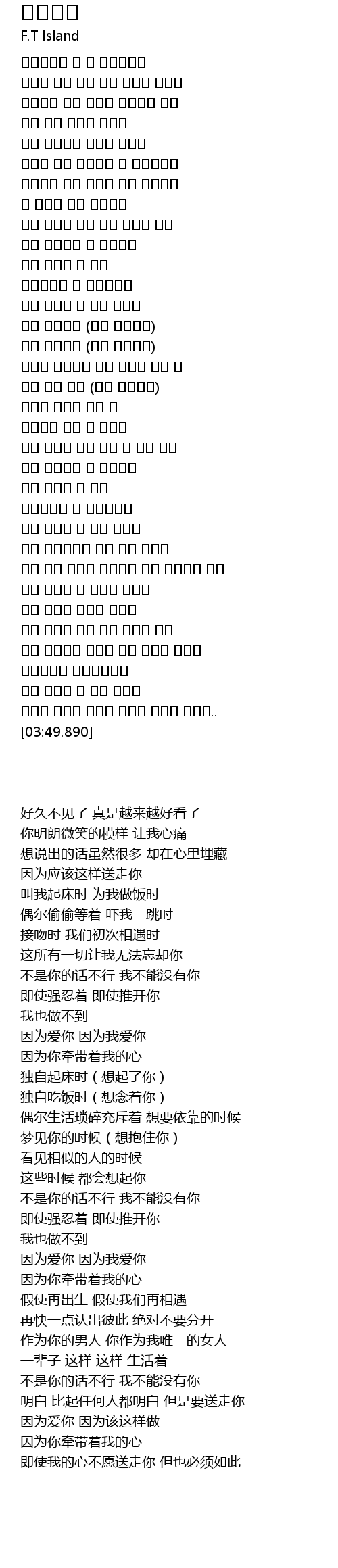 | [03:38.340] | 보내기 싫은데 내맘은 그런데 보내야 하는데.. |