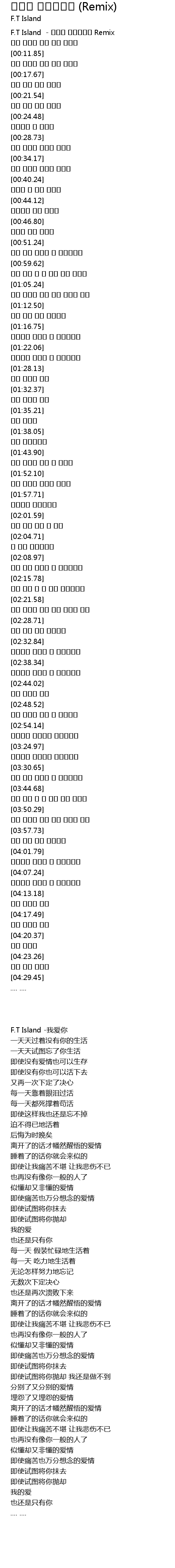 | [00:00.69] | F.T Island - 그대는 사랑입니다 Remix |