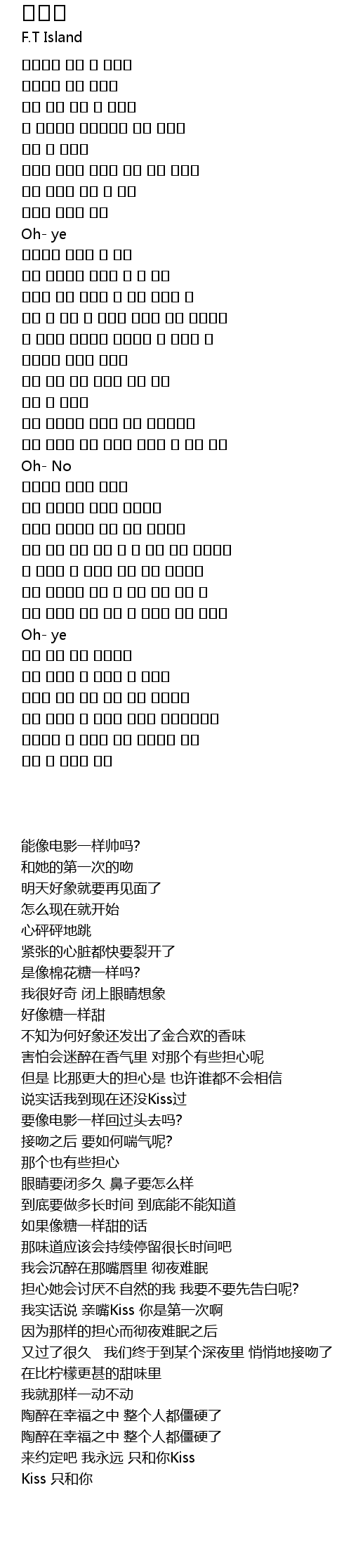 나 솔직히 입 맞추는 키스 니가 처음이야 |