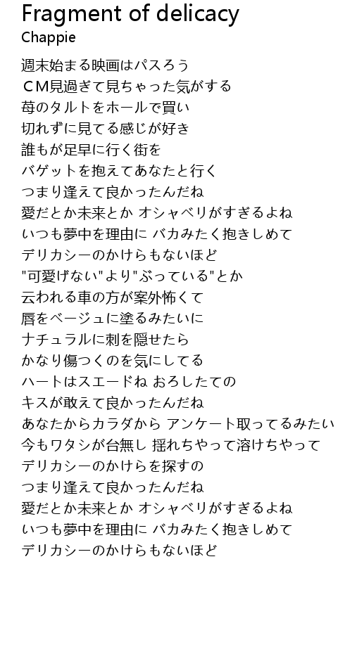 | [02:23.72] | いつも夢中を理由に バカみたく抱きしめて |