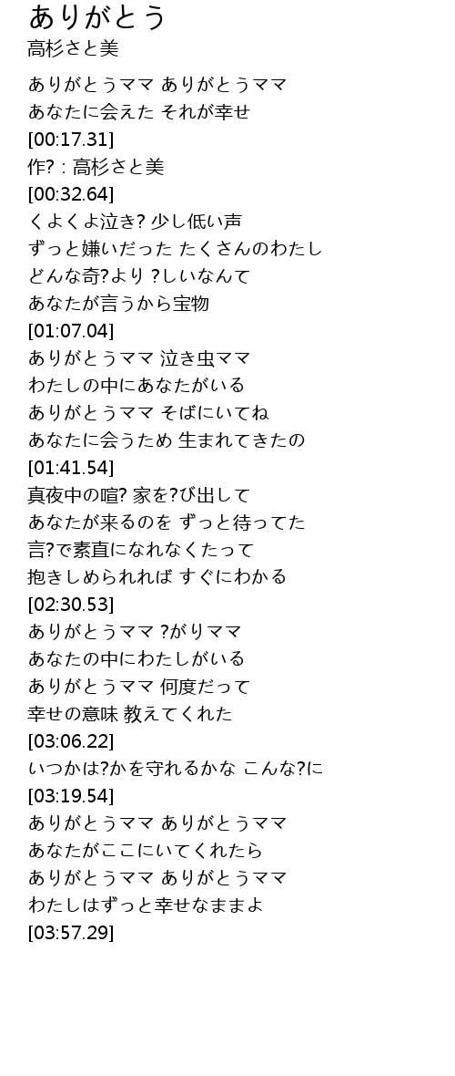 | [03:40.37] | ありがとうママ ありがとうママ |