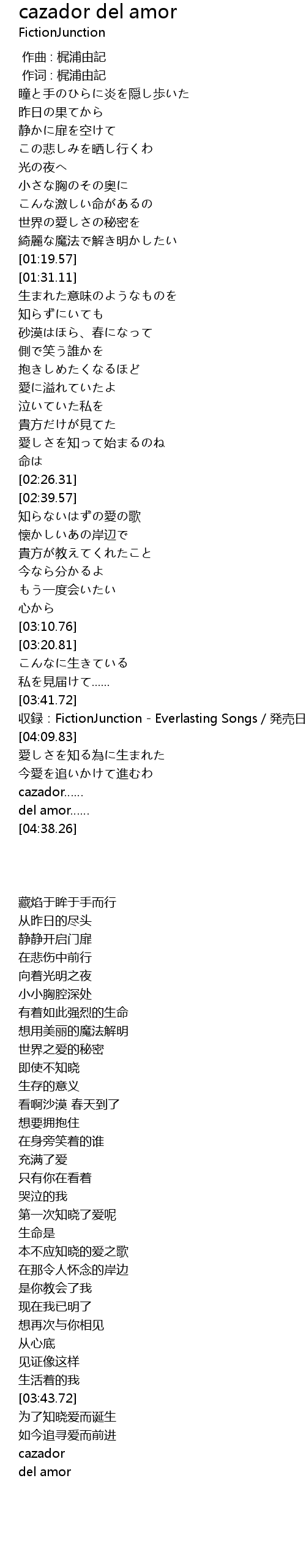 | [03:43.72] | 収録:FictionJunction - Everlasting Songs/発売日:2009/02/25 |