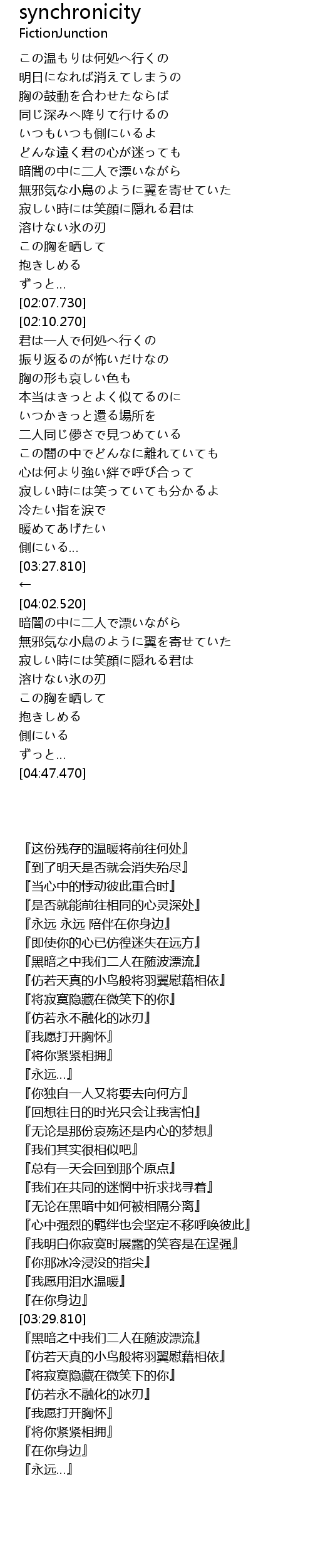 | [04:24.790] | 溶けない氷の刃 |