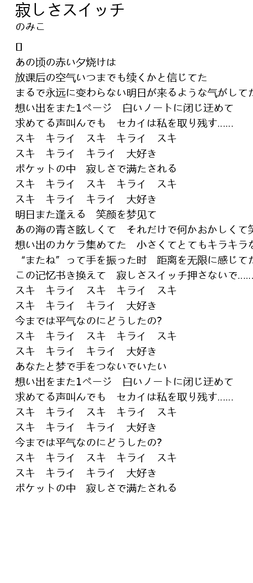 | この记忆书き换えて 寂しさスイッチ押さないで…… | |