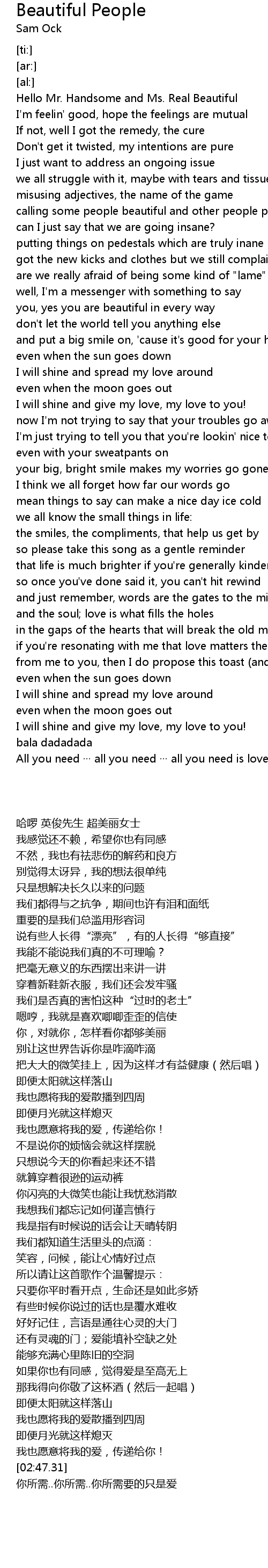 | [00:38.56] | Hello Mr. Handsome and Ms. Real Beautiful |
