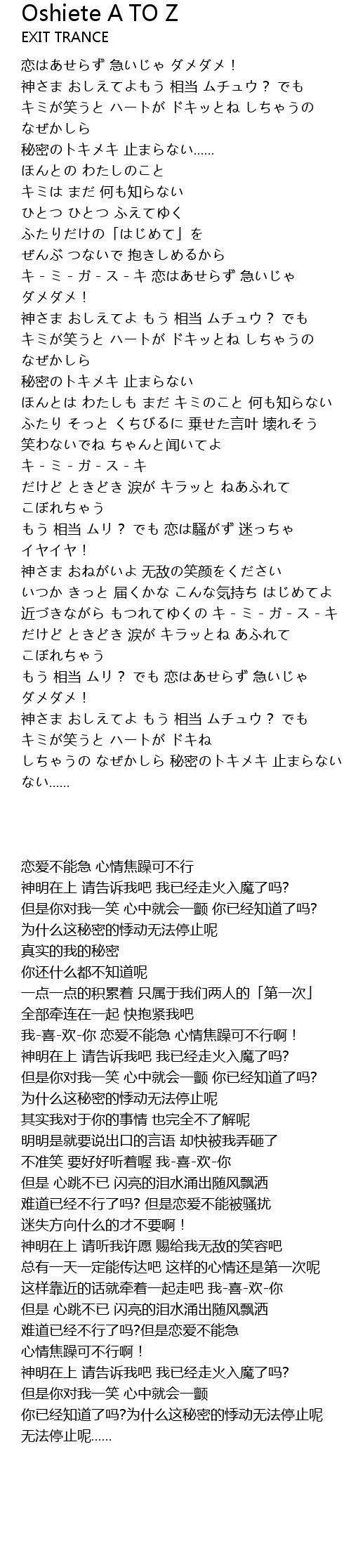 | [03:16.300] | 神さま おしえてよ もう 相当 ムチュウ? でも キミが笑うと ハートが ドキね |
