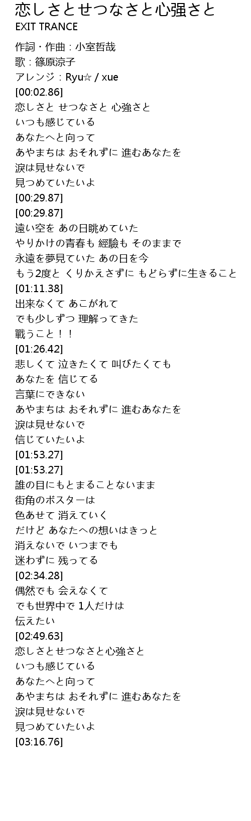 | [00:03.40] | 恋しさと せつなさと 心強さと |