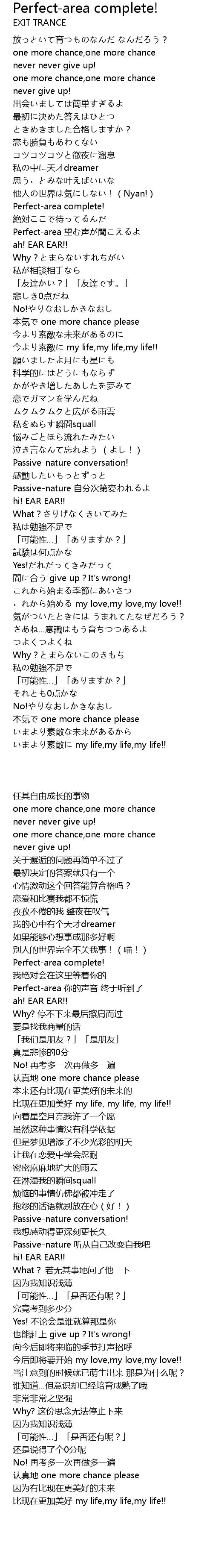 | [00:53.29] | Perfect-area 望む声が聞こえるよ |