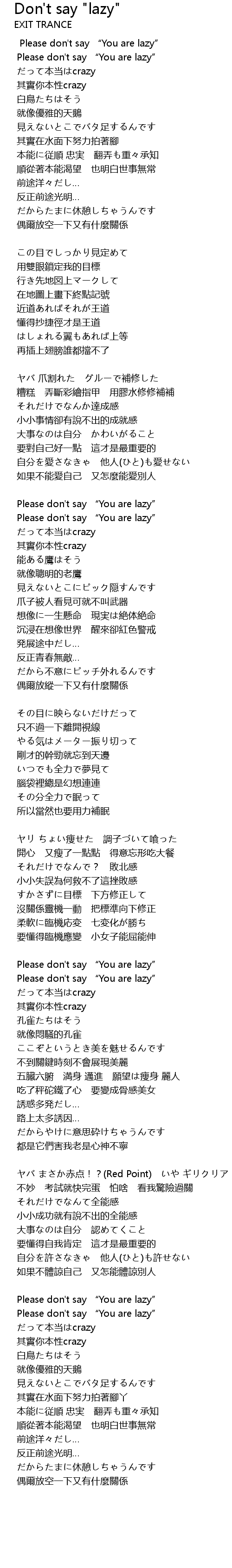 | Song | Don't say "lazy" |