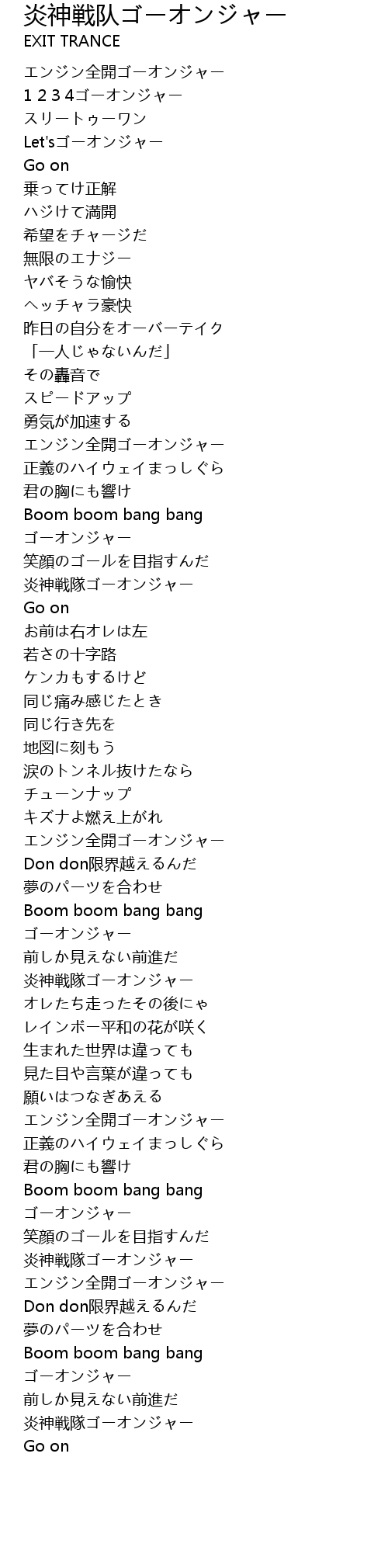 | [03:02.19] | エンジン全開ゴーオンジャー |