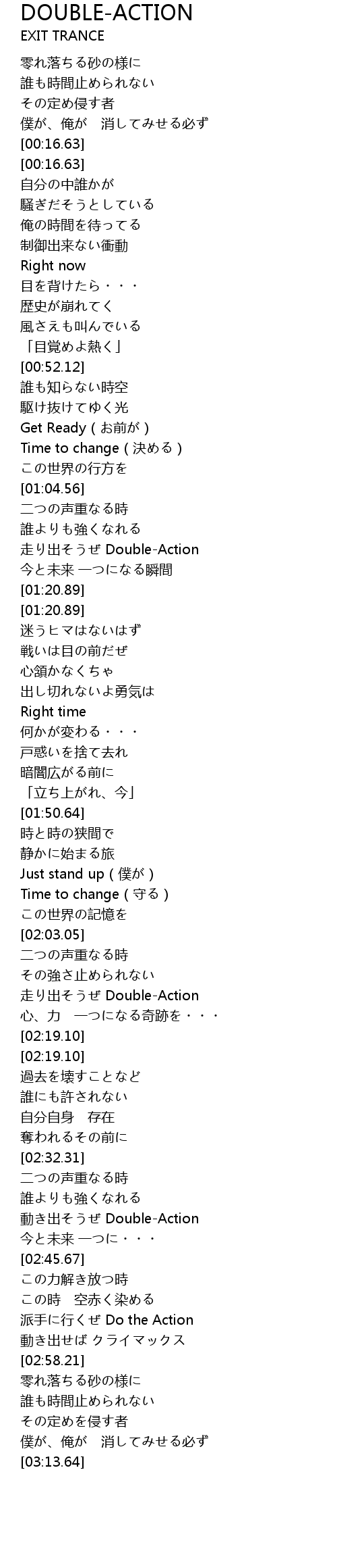 | [02:38.87] | 動き出そうぜ Double-Action |