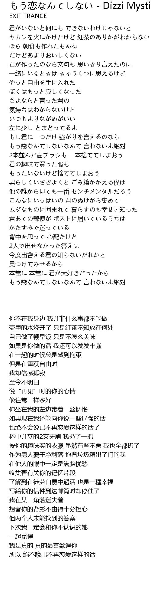 | [03:16.77] | もう戀なんてしないなんて 言わないよ絶対 |