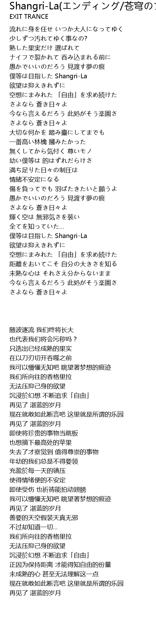 | [00:22.61] | 僕等は目指した Shangri-La |
