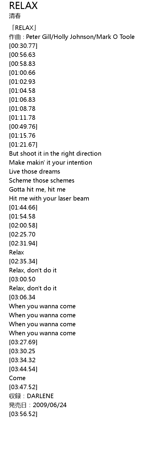 | [02:14.47][01:08.78][00:44.73] | Relax, don' t do it |