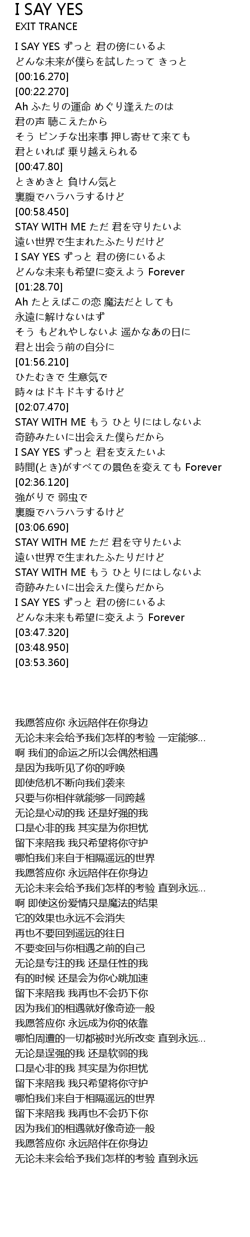 | [03:31.540] | I SAY YES ずっと 君の傍にいるよ |