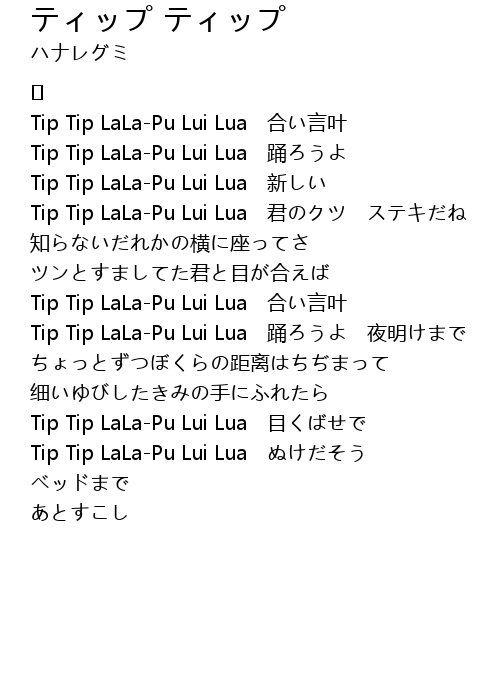 | Tip Tip LaLa-Pu Lui Lua 合い言叶 | |