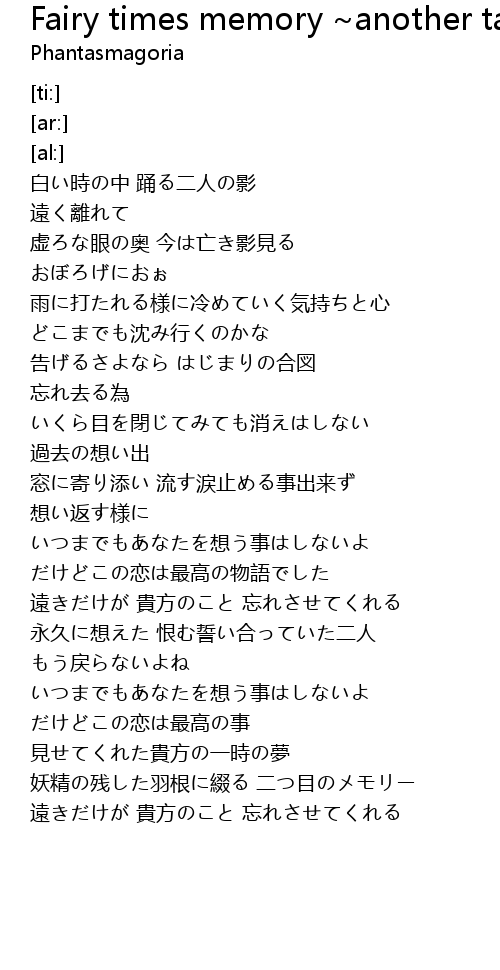 | [04:50.69] | 妖精の残した羽根に綴る 二つ目のメモリー |