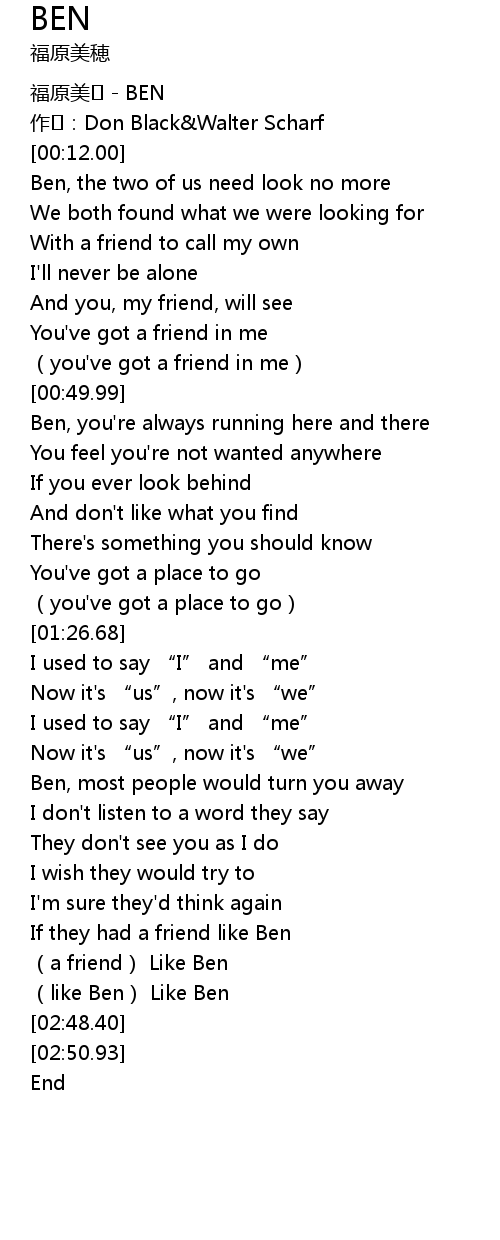 | [00:06.00] | zuo: Don Black Walter Scharf |