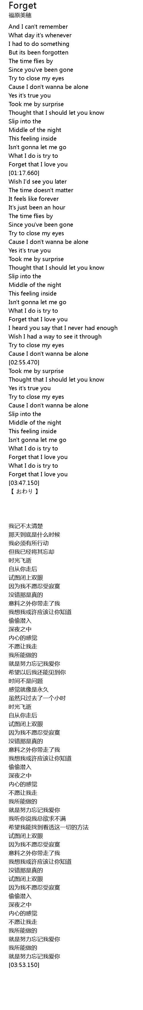 | [03:41.240] | Forget that I love you |