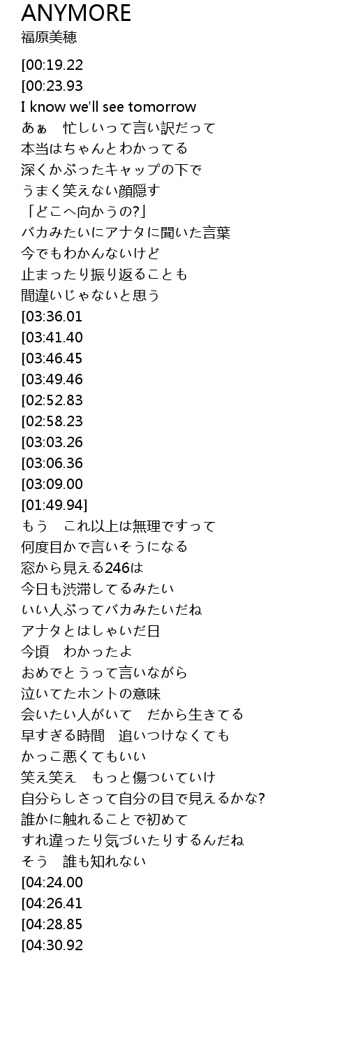 | [04:21.30][04:30.92][04:40.51][04:50.08] | I know we'll see tomorrow |