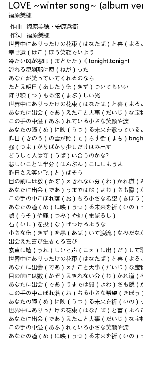 | [00:00.00] | 作曲 : 福原美穂・安原兵衛 |