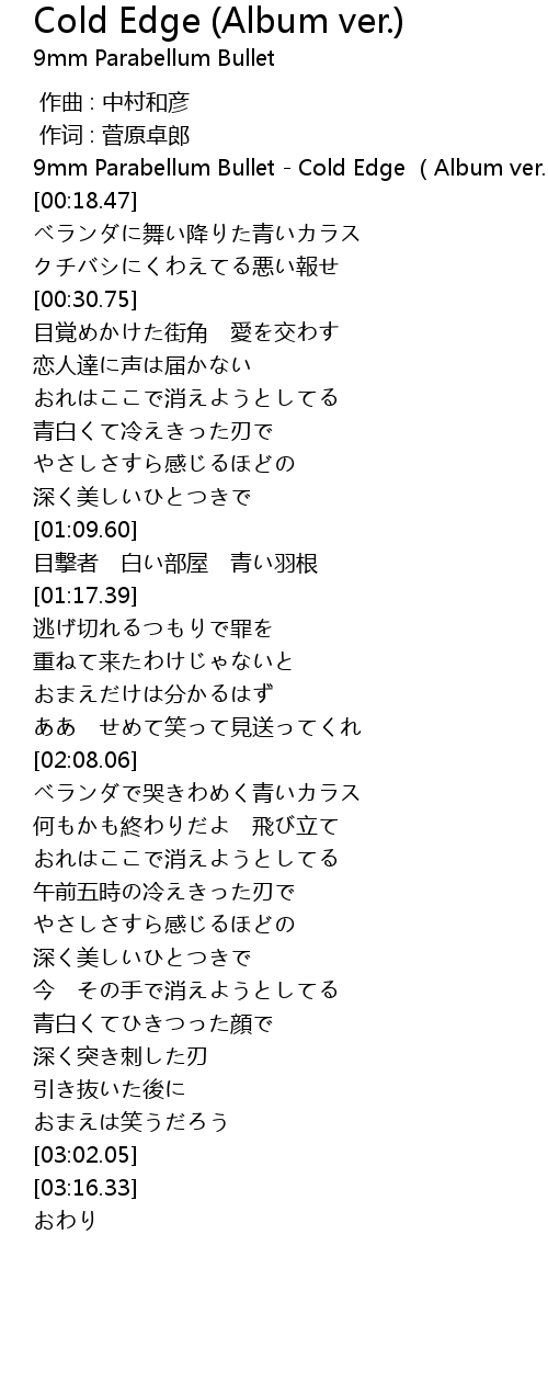 | [00:00.00] | 9mm Parabellum Bullet - Cold Edge (Album ver.) |