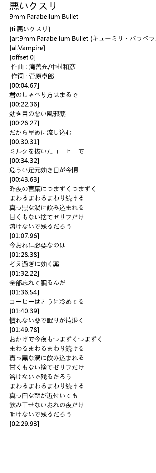 | [00:23.18] | 効き目の悪い風邪薬 |