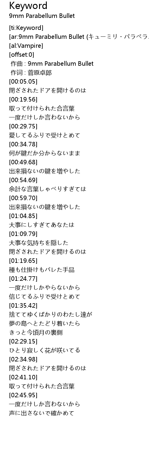 | [00:45.50] | 何が鍵だか分からないまま |