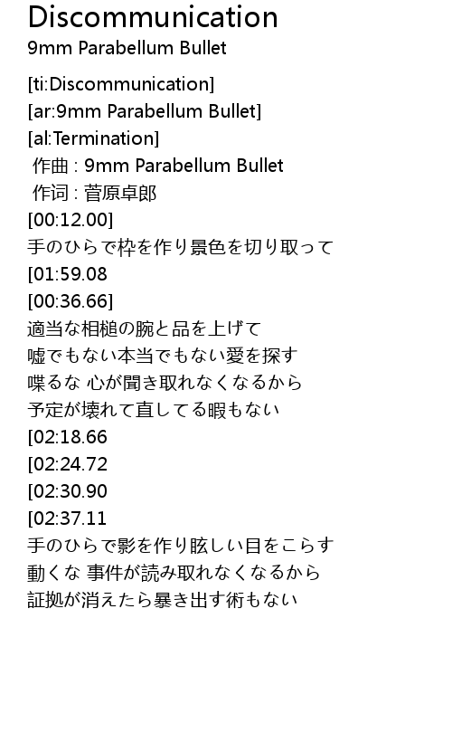 | [00:00.00] | 作曲 : 9mm Parabellum Bullet |