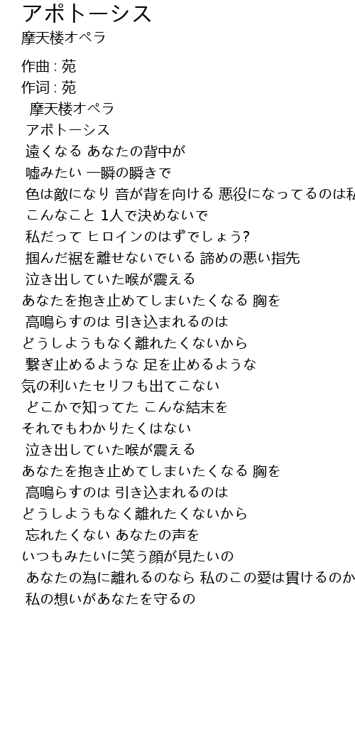 | 繋ぎ止めるような 足を止めるような 気の利いたセリフも出てこない | |
