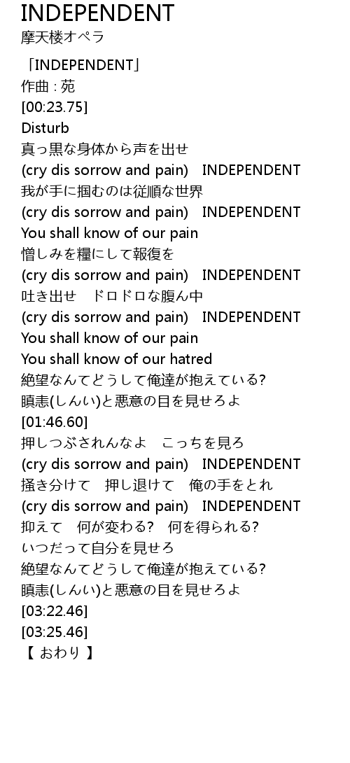 | [00:39.19] | (cry dis sorrow and pain) INDEPENDENT |