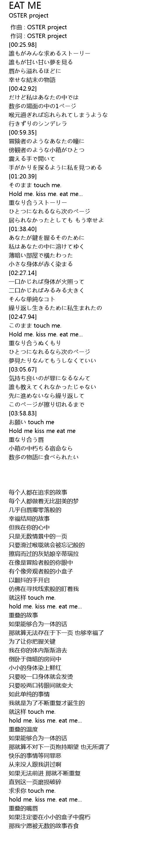 | [04:01.97] | Hold me kiss me eat me |