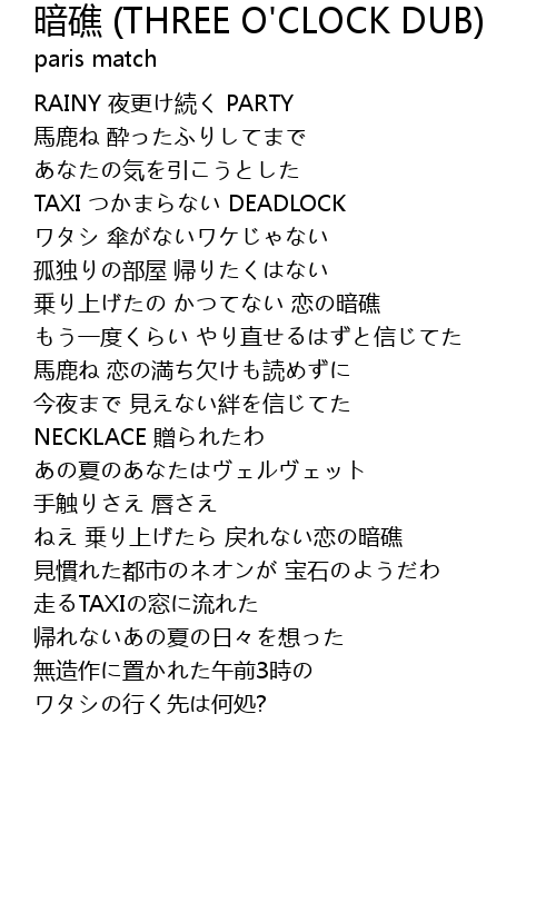 | Song | 暗礁 (THREE O'CLOCK DUB) |