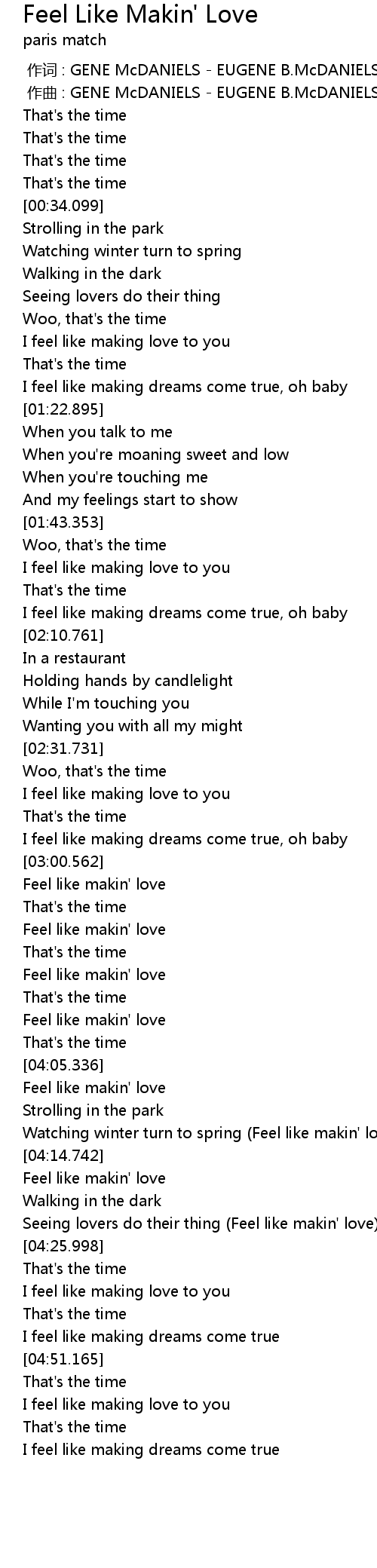 | [04:21.155] | Seeing lovers do their thing (Feel like makin' love) |