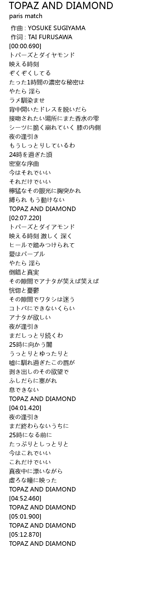| [02:03.390] | TOPAZ AND DIAMOND |