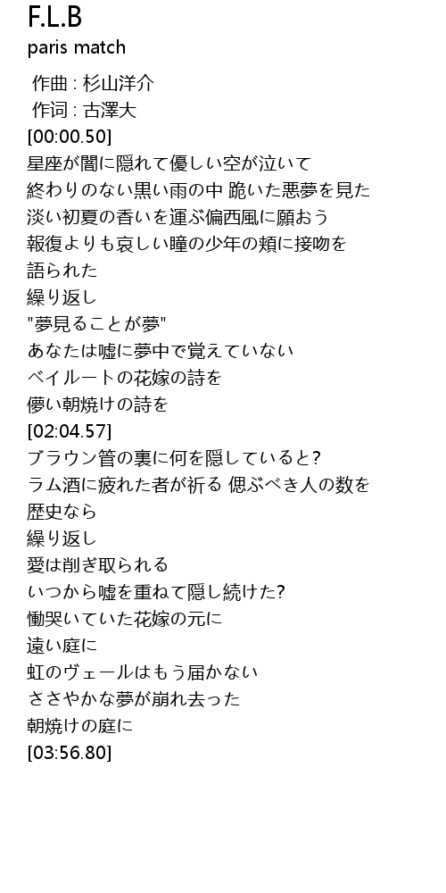 | [00:53.30] | 淡い初夏の香いを運ぶ偏西風に願おう |